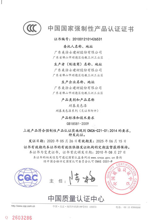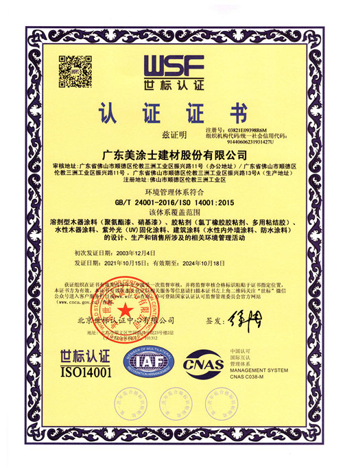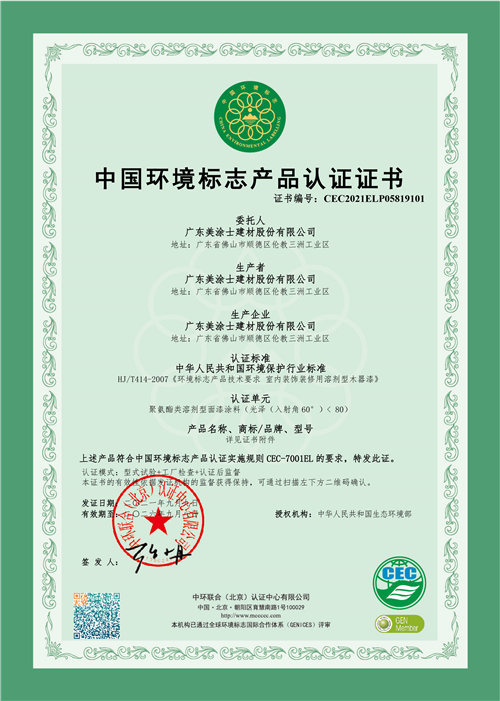2021年“十环”证书(水性木器色漆)