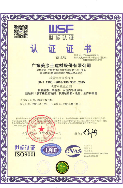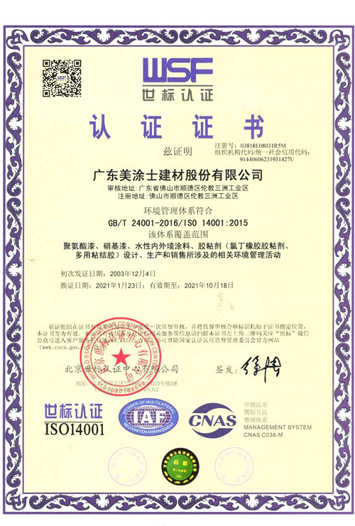 2021年“十环”证书(外墙底漆)