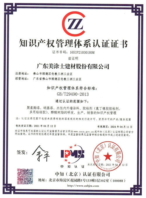 知识产权管理体系认证证书(2021年)