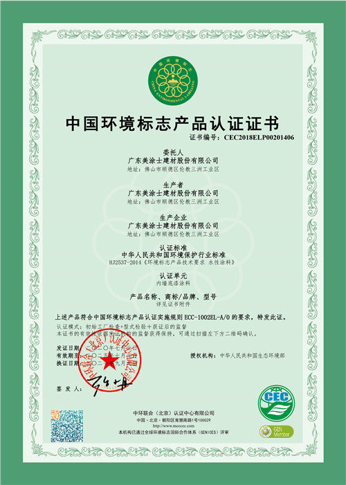 “十环”证书(防水涂料)