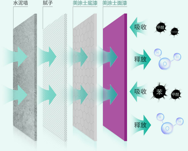 美涂士独有的360°抗甲醛技术,全方位有效的