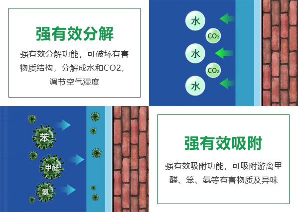 美涂士自有研发白竹炭自然微循环技术以竹为原料,在800℃-1000℃的高温下干馏形成。竹炭细腻多孔,能够强力吸附空气中的各种浮游物质,对于硫化物、氢化物、甲醛、苯、酚等有害物质的吸附效果尤为突出。而白竹炭比黑竹炭的吸附分解效果更加出色,提升效果为20%-30%。同时,白竹炭释放的微量元素能够把吸附的有害物质进行分解、净化处理,达到杀菌、除异味的目的。竹炭能够发射密集的负离子,浓度为6800个/cm³,而负离子和空气中的微粒发生碰撞,使其带电并附着于墙面、地板、天花板等,达到净化空气的目的。